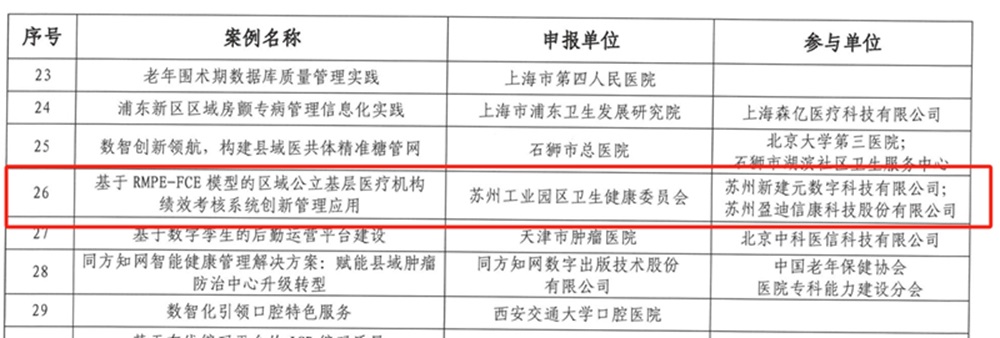 盈迪信康联合苏州卫健委、新建元数科打造的「基于RMPE-FCE模型的区域公立基层医疗机构绩效考核系统」,凭借创新性与实效性成功入选2024医疗信息化创新典型案例,成为智慧医疗建设的标杆实践。