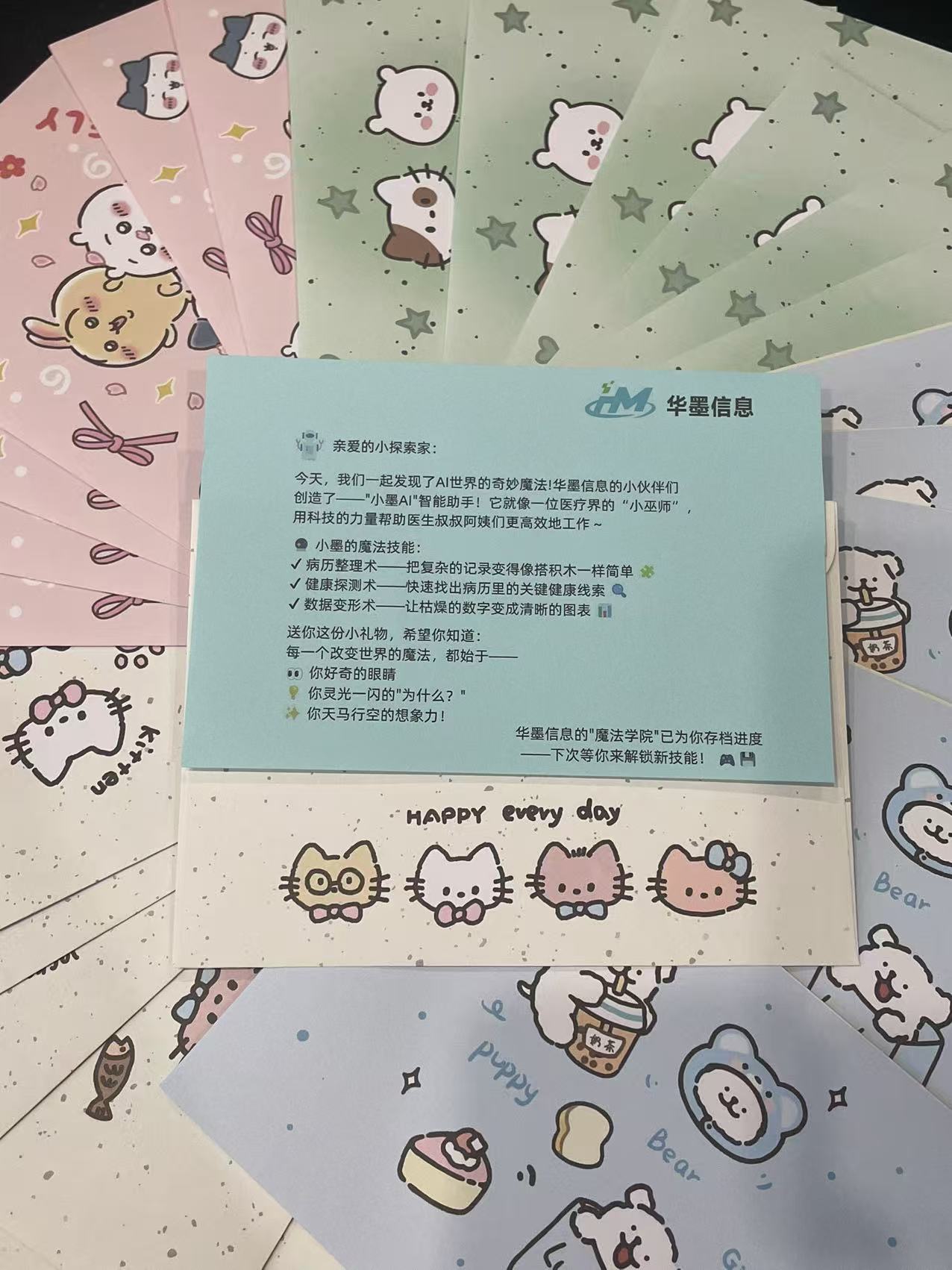时光匆匆,活动渐入尾声。 华墨信息为同学们准备了科技主题伴手礼,附赠贺卡上的暖心寄语格外醒目:"愿你永远保留好奇心 —— 这是比答案更珍贵的礼物。"